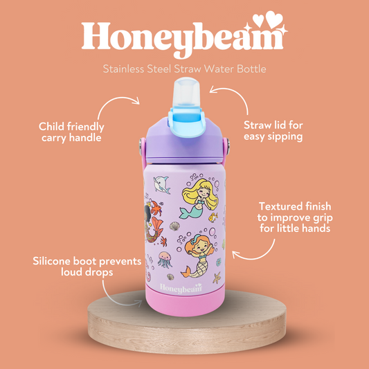 Mermaid Magic Kids Stainless Steel Water Bottle With Straw 350ml