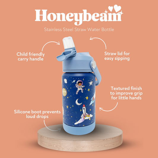 Blast Off! Kids Stainless Steel Water Bottle With Straw 350ml