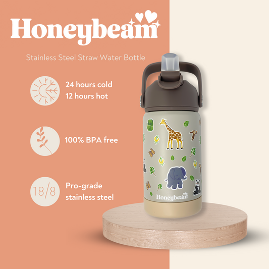 Safari Adventure Kids Stainless Steel Water Bottle With Straw 350ml