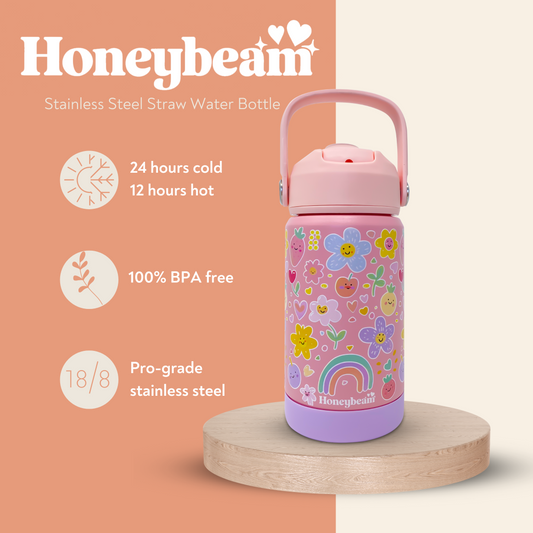 Flowers & Fruit Kid's Stainless Steel Water Bottle With Straw 350ml
